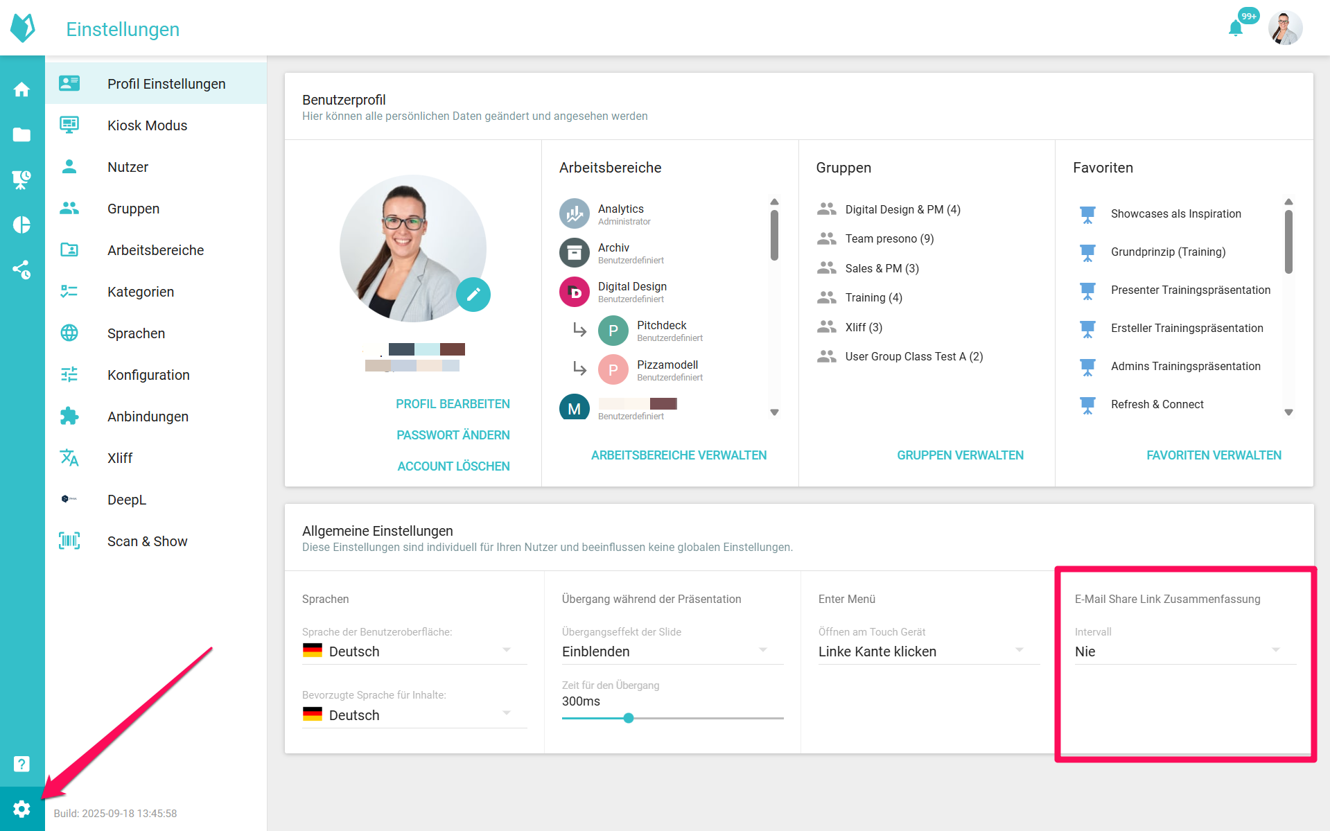 Um die Mails für dich zu aktivieren, gehe bei deinem Profil in die Einstellungen. Dort findest du die Auswahl rechts unten: