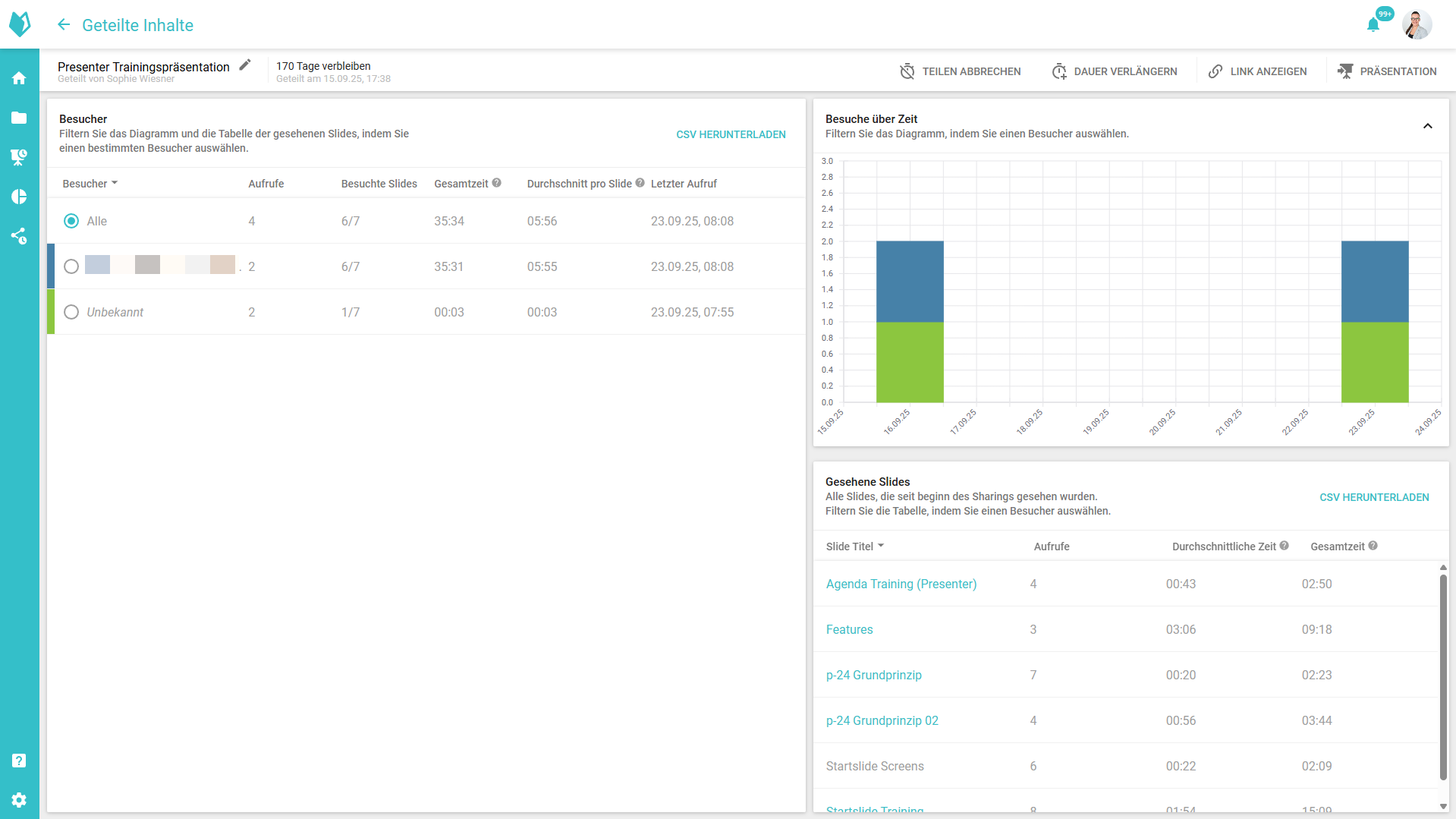 Geteilte Inhalte verwalten und auswerten (Shared Analytics für freigegebene Präsentationen)