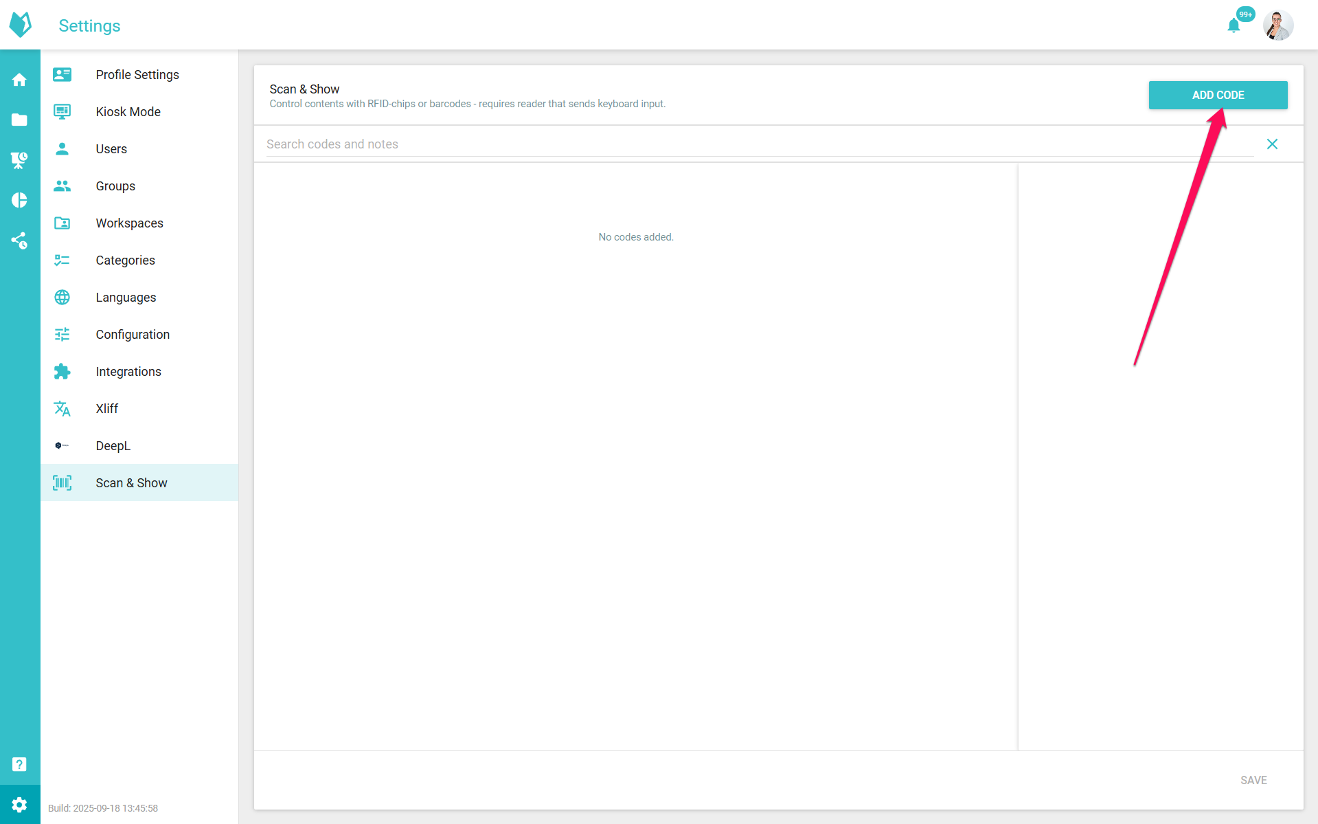 To add a new code, click on “Add code” in the top right corner.