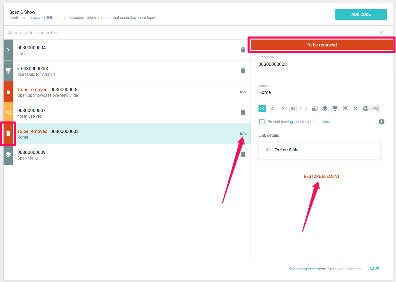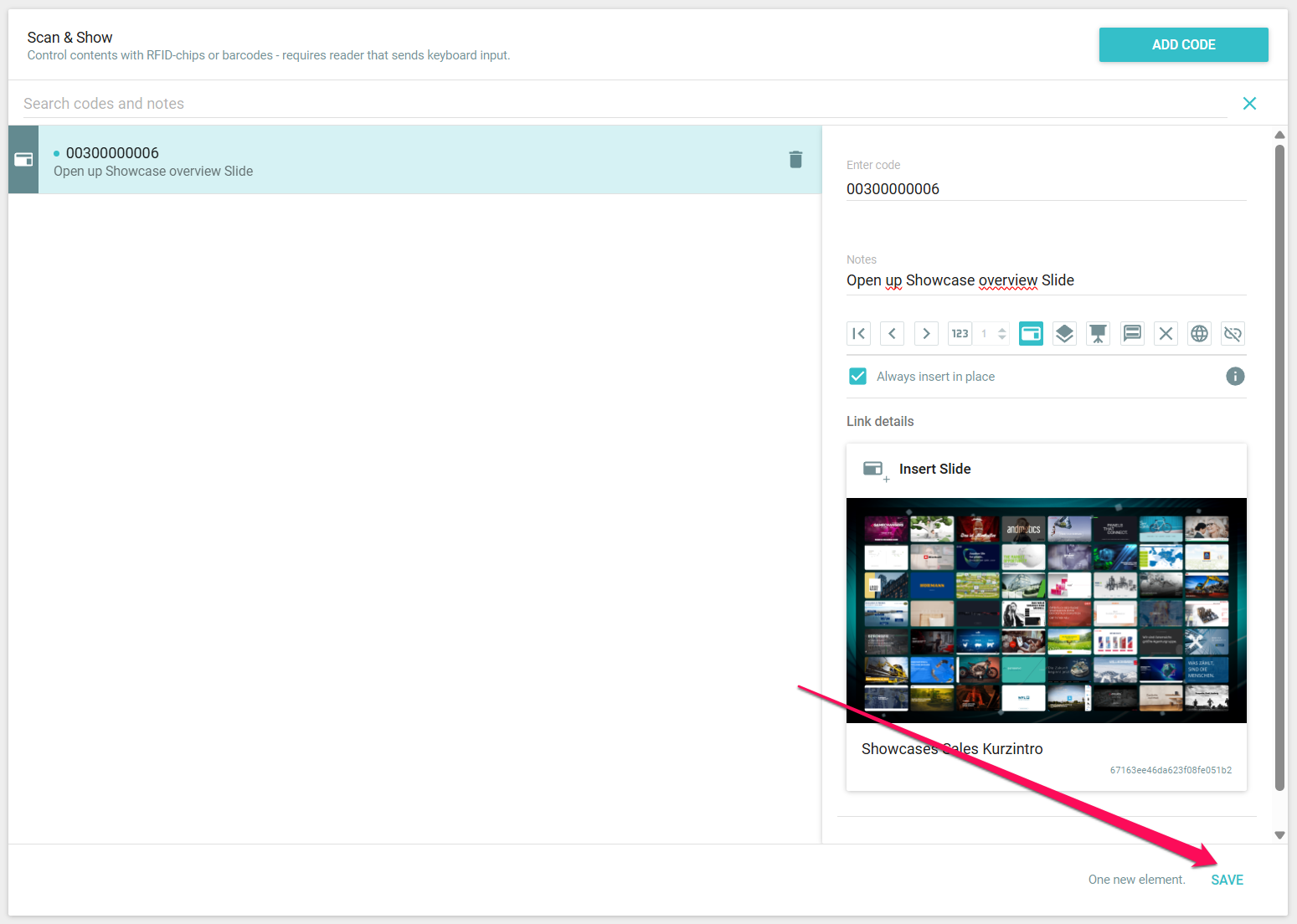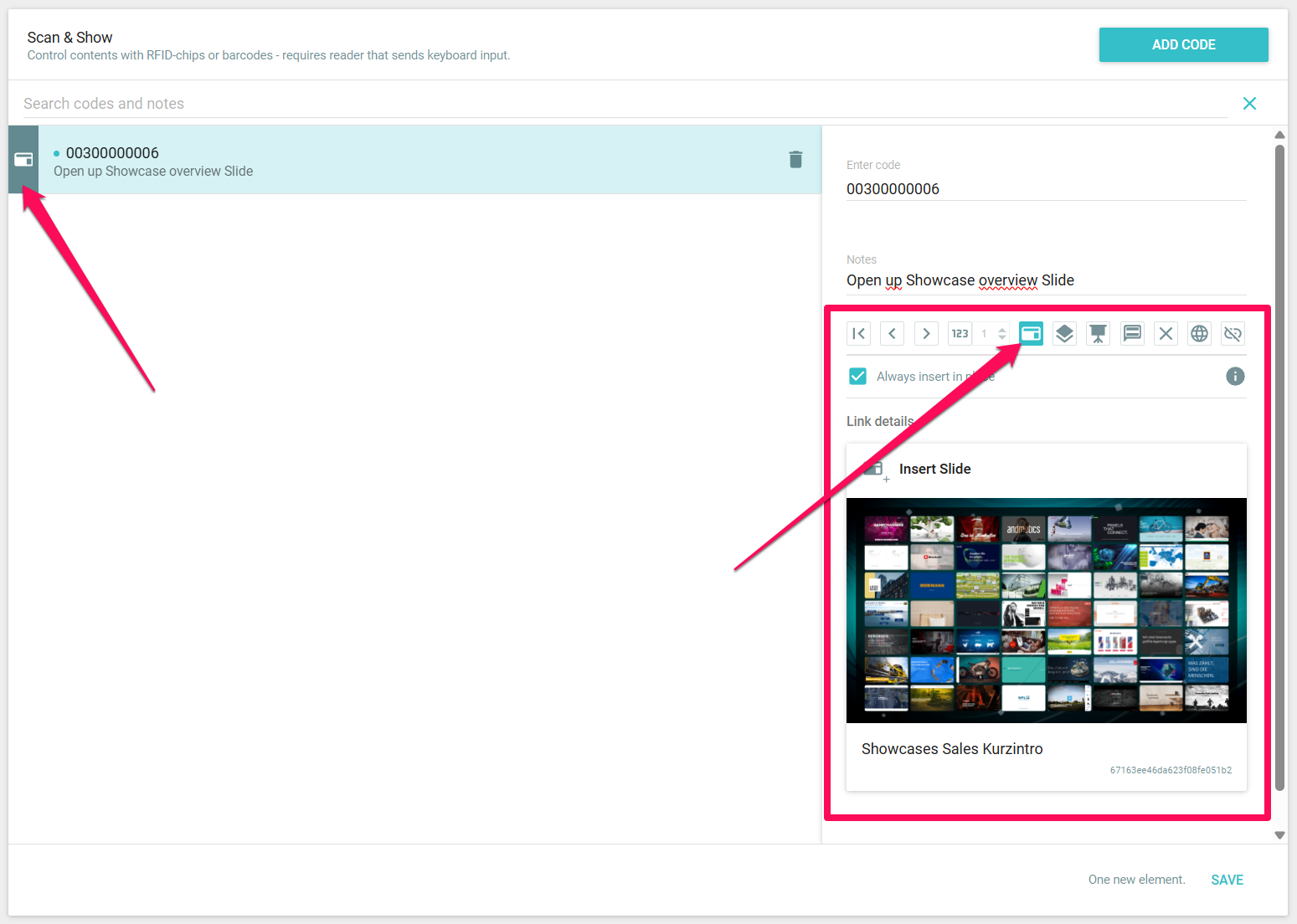 Once you have created and saved all the codes, you can simply access the registered content during your presentation by scanning the codes using Scan & Show. Cool, right? Please ensure that your user has permission to use Scan & Show.