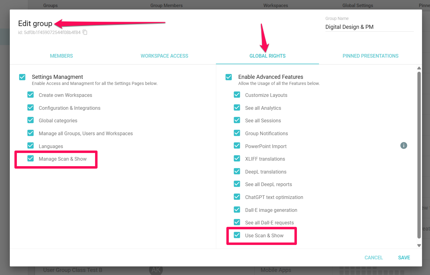 There are two permissions for Scan & Show: