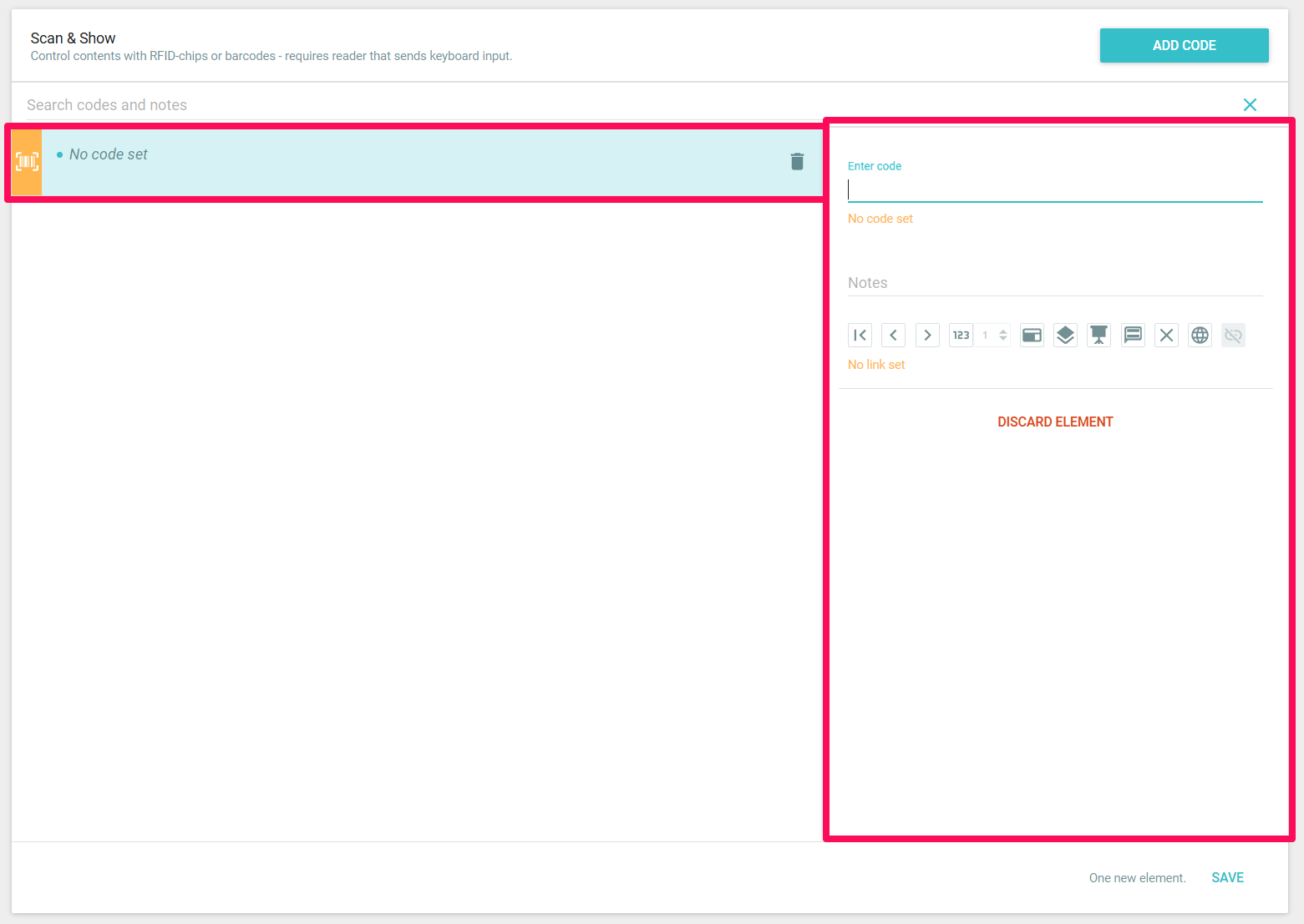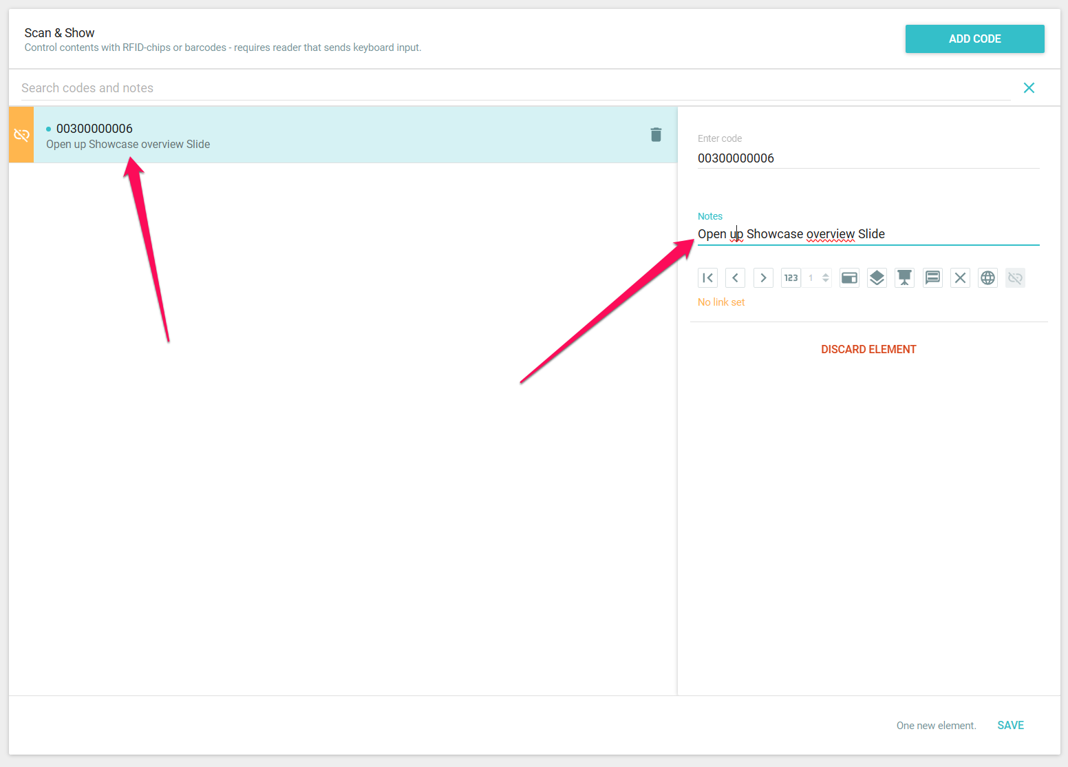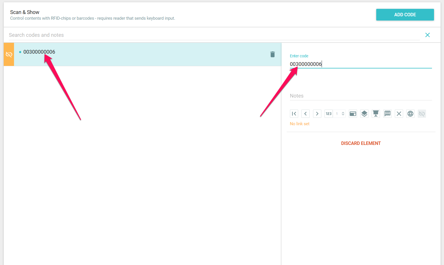 Our tip: connect the scanner directly to your laptop and scan the tag/code so you don't have to type it in – you can do this in the search function, but also when editing a code or creating a new one.