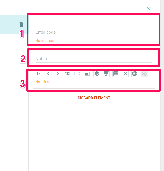 If you want to delete an item, you can either use the bin icon in the list or the “Remove element” button in the detailed view.