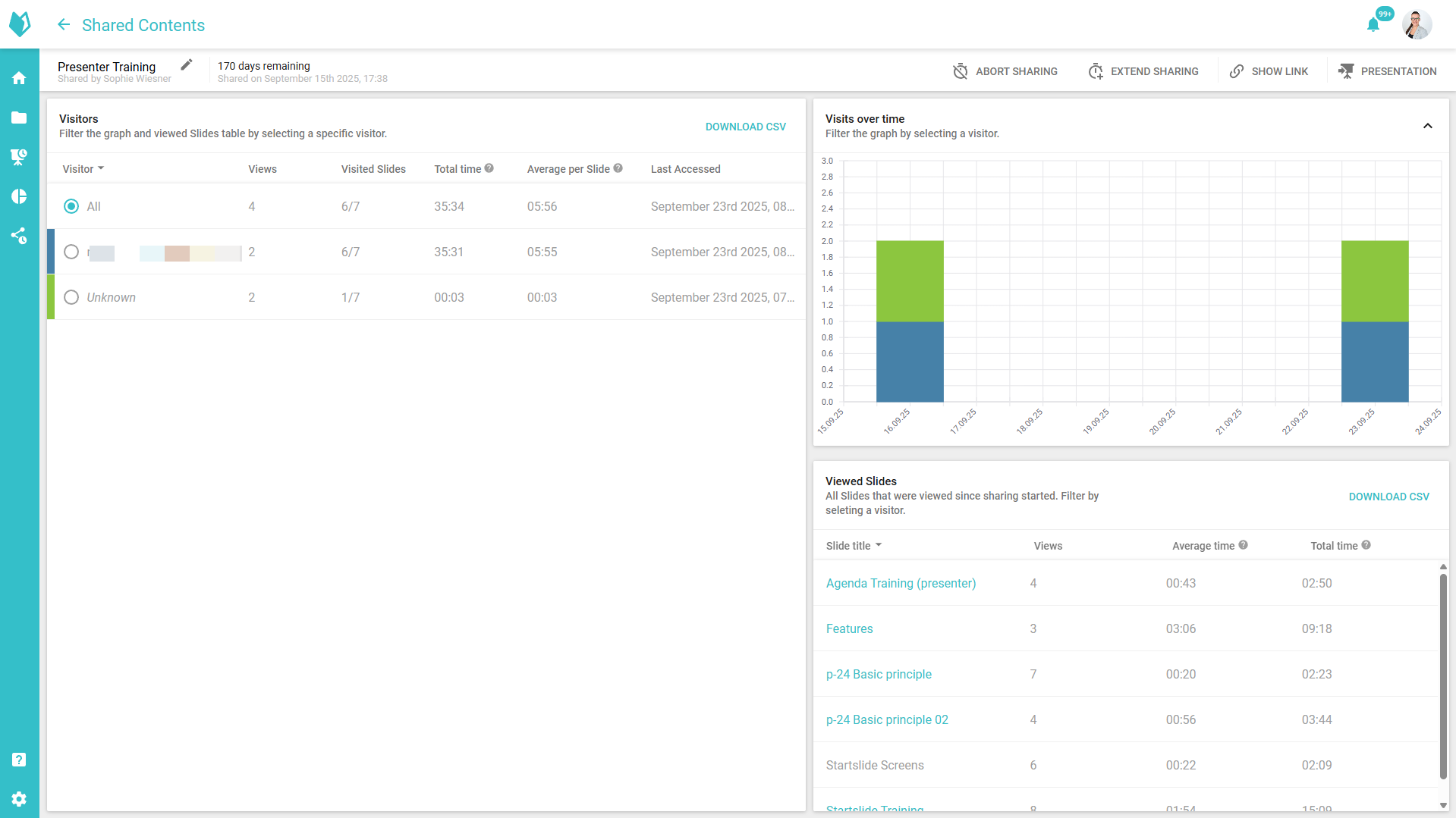 Manage and analyze shared content (Shared analytics for shared presentations)