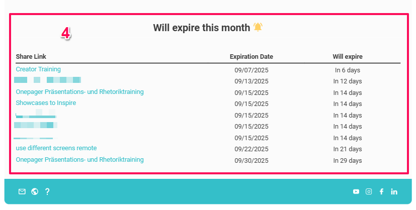 In all cases, you can see further details, such as the number of views per link or the exact expiration date.