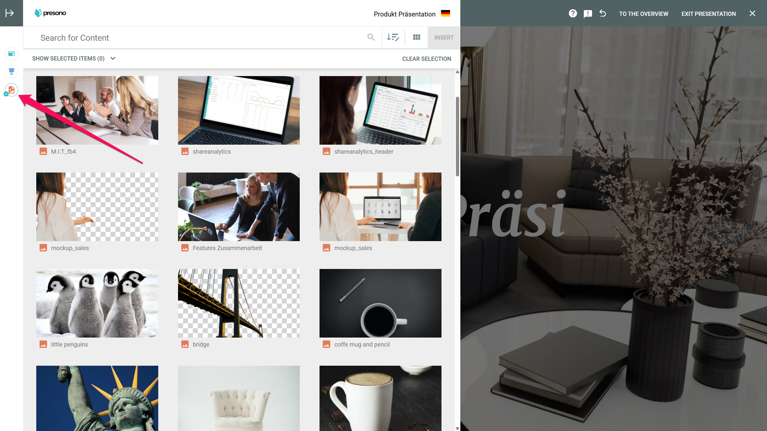 - Option: you can insert your media via the Enter menu. They will then be temporarily inserted into the presentation.